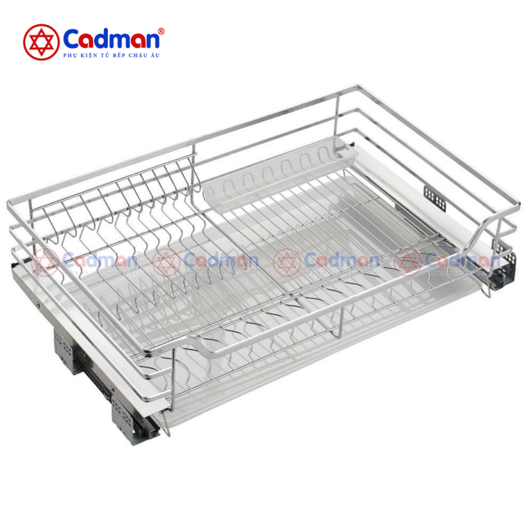 Giá đựng bát đĩa nan dẹt inox 304 CADMAN ray âm giảm chấn là phụ kiện tủ bếp cao cấp không thể thiếu trong căn bếp hiện đại. Sản phẩm không chỉ giúp lưu trữ bát đĩa, xoong nồi một cách ngăn nắp mà còn mang lại sự tiện nghi và sang trọng cho không gian bếp.