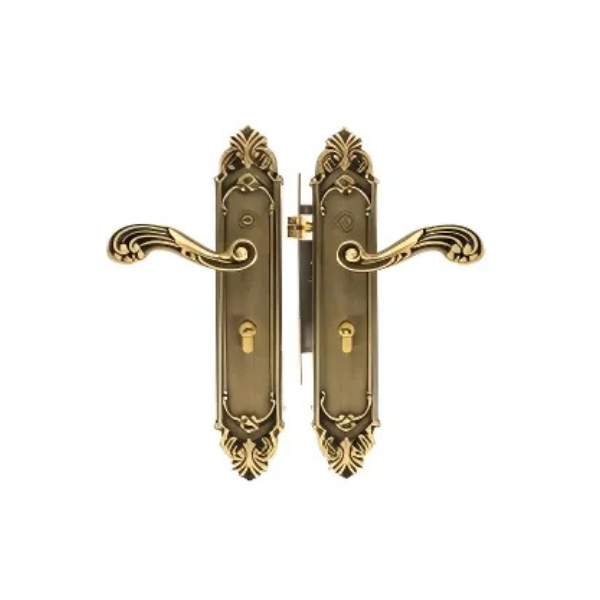 Tay cầm được làm từ đồng đặc nguyên khối, mang lại cảm giác cầm nắm chắc tay, sang trọng. Thiết kế tinh xảo với hoa văn chạm khắc tỉ mỉ giúp tôn lên đẳng cấp của không gian sống. Độ nặng vừa phải của tay cầm cũng giúp thao tác đóng mở cửa trở nên dễ dàng, mượt mà hơn.