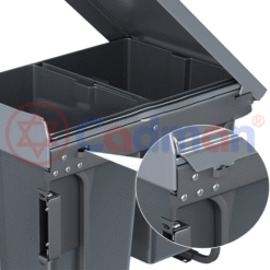 Thiết kế nắp đậy thông minh đi kèm móc cài chắc chắn, giúp nắp thùng luôn ổn định ở đúng vị trí, không bị xô lệch khi di chuyển. Điều này không chỉ giữ mùi hiệu quả, tránh ám mùi ra khoang tủ mà còn đảm bảo vệ sinh, ngăn côn trùng tiếp cận rác thải bên trong.